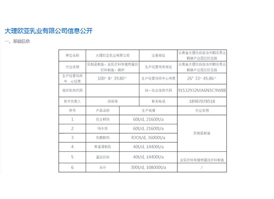 云南歐亞乳業有限公司子公司牧場環保信息公示